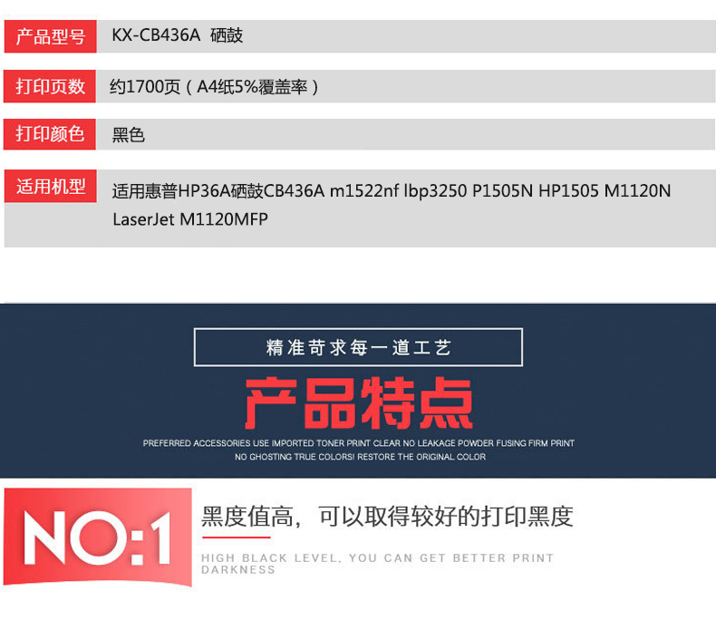 凱欣標(biāo)準(zhǔn)版 KX-CB436A粉盒 適用惠普HP36A硒鼓CB436A m1522nf墨盒佳能lbp3250 P1505N HP1505打印機(jī)M1120N LaserJet M1120 全國(guó)統(tǒng)一價(jià):130元