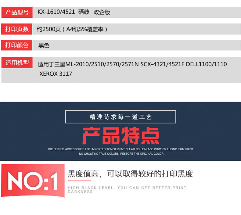 凱欣政企版 KX-16104521硒鼓適用于三星 ML-2010251025702571N, SCX-43214521F, DELL11001110,XEROX 3117 全國統(tǒng)一價:156元