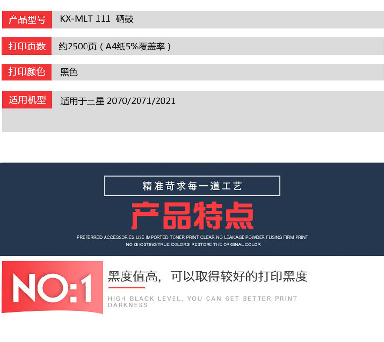 凱欣標(biāo)準(zhǔn)版 KX-MLT111粉盒 適用MLT-D111S M2070 M2021 M2022 M2020碳粉墨盒M2021W M2020W 全國(guó)統(tǒng)一價(jià):146元